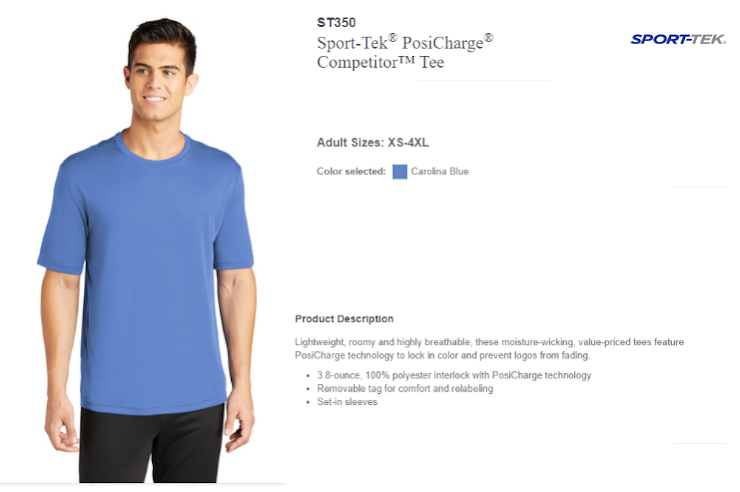The shirt is lightweight, roomy, highly breathable, moisture-wicking and feature PosiCharge technology to lock in color and prevent fading.